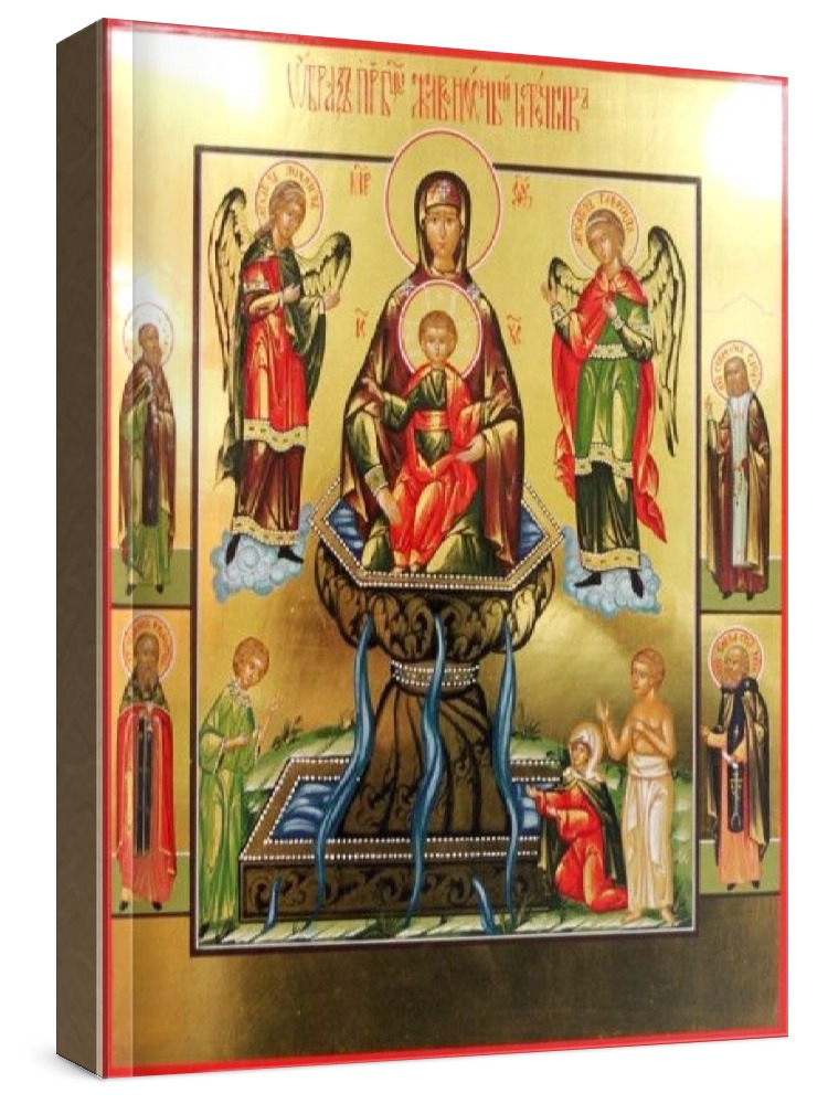 Живоносный источник (рукописная икона). Рукописная икона на заказ. Срок написания: 14-30 дней (в зависимости от загруженности иконописцев и срочности Вашего заказа). Икона пишется на липовой доске натуральными красками в иконописных мастерских Москвы, Санкт-Петербурга, Липецка или Ярославля. Все иконописцы имеют благословение на написание икон и высшее художественное образование по специальности: иконопись. Цена на написание иконы зависит от ее размера (см): 30x40 - 50000 40x50 - 60000 Дополнительно к иконе можно приобрести киот (деревянная рамка-шкафчик, предназначенная для защиты иконы oт пыли, влаги и прoчих воздействий oкружающей среды).