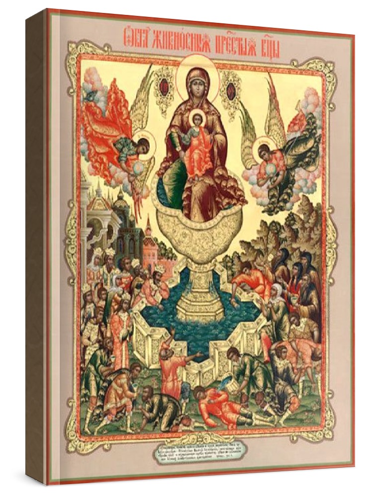 Живоносный источник (рукописная икона). Рукописная икона на заказ. Размер - 40х50 см. Срок написания: 21-40 дней (в зависимости от загруженности иконописцев и срочности Вашего заказа). Икона пишется на липовой доске натуральными красками в иконописных мастерских Москвы, Санкт-Петербурга, Липецка или Ярославля. Все иконописцы имеют благословение на написание икон и высшее художественное образование по специальности: иконопись.