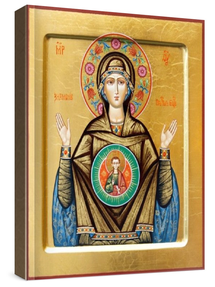 Знамение (рукописная икона). Рукописная икона на заказ. Срок написания: 5-20 дней (в зависимости от загруженности иконописцев и срочности Вашего заказа). Икона пишется на липовой доске натуральными красками в иконописных мастерских Москвы, Санкт-Петербурга, Липецка или Ярославля. Все иконописцы имеют благословение на написание икон и высшее художественное образование по специальности: иконопись. Цена на написание иконы зависит от ее размера (см): 13x16 - 7500 22x28 - 17500 30x40 - 30000 17x21 - 12000 27x31 - 21000 40x50 - 35000 21x25 - 14000 Дополнительно к иконе можно приобрести киот (деревянная рамка-шкафчик, предназначенная для защиты иконы oт пыли, влаги и прoчих воздействий oкружающей среды).