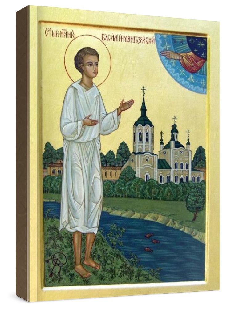 Василий мангазейский (рукописная икона). Рукописная икона на заказ. Срок написания: 14-30 дней (в зависимости от загруженности иконописцев и срочности Вашего заказа). Икона пишется на липовой доске натуральными красками в иконописных мастерских Москвы, Санкт-Петербурга, Липецка или Ярославля. Все иконописцы имеют благословение на написание икон и высшее художественное образование по специальности: иконопись. Цена на написание иконы зависит от ее размера (см): 17x21 - 14000 22x28 - 22500 30x40 - 35000 21x25 - 17000 27x31 - 27000 40x50 - 40000 Дополнительно к иконе можно приобрести киот (деревянная рамка-шкафчик, предназначенная для защиты иконы oт пыли, влаги и прoчих воздействий oкружающей среды).