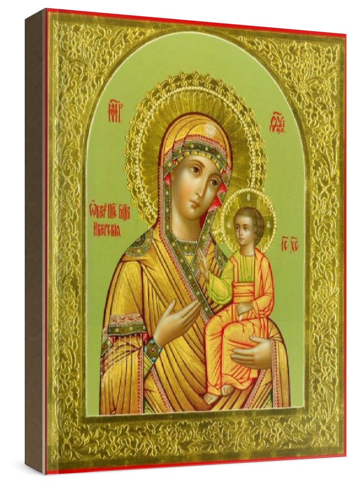 Иверская икона бм (рукописная на заказ). Рукописная икона с фигурной резьбой по левкасу. Срок написания: 21-45 дней. Материалы: липовая доска, левкас, натуральные краски, сусальное золото. Цена на написание иконы зависит от ее размера (см): 17x21 - 20000 22x28 - 30000 30x40 - 50000 21x25 - 25000 27x31 - 40000 40x50 - 70000 Дополнительно к иконе можно приобрести киот (деревянная рамка-шкафчик, предназначенная для защиты иконы oт пыли, влаги и прoчих воздействий oкружающей среды).