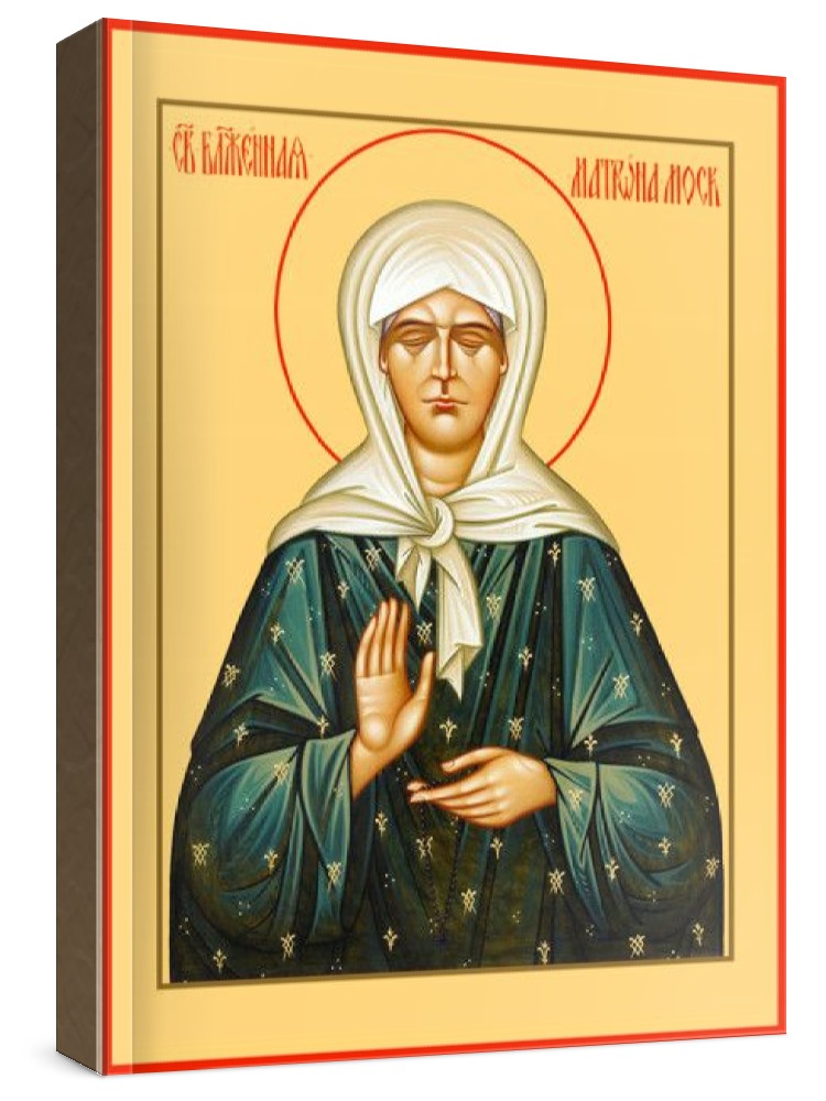 Матрона московская (рукописная икона). Рукописная икона на заказ. Срок написания: 5-20 дней (в зависимости от загруженности иконописцев и срочности Вашего заказа). Икона пишется на липовой доске натуральными красками в иконописных мастерских Москвы, Санкт-Петербурга, Липецка или Ярославля. Все иконописцы имеют благословение на написание икон и высшее художественное образование по специальности: иконопись. Цена на написание иконы зависит от ее размера (см): 9x10 - 4500 21x25 - 12000 30x40 - 25000 13x16 - 7000 22x28 - 15000 40x50 - 30000 17x21 - 10000 27x31 - 18000 Дополнительно к иконе можно приобрести киот (деревянная рамка-шкафчик, предназначенная для защиты иконы oт пыли, влаги и прoчих воздействий oкружающей среды).