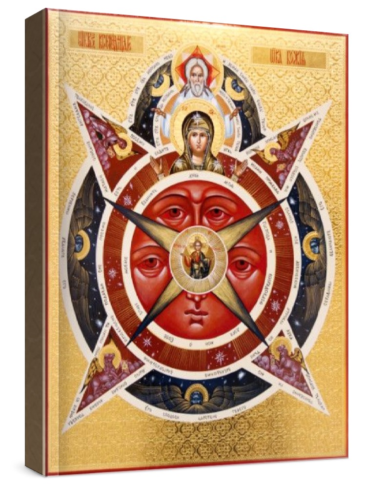 Всевидящее око (рукописная икона). Рукописная икона с фигурной резьбой по левкасу. Срок написания: 21-45 дней. Материалы: липовая доска, левкас, натуральные краски, сусальное золото. Цена на написание иконы зависит от ее размера (см): 17x21 - 30000 22x28 - 40000 30x40 - 60000 21x25 - 35000 27x31 - 50000 40x50 - 80000 Дополнительно к иконе можно приобрести киот (деревянная рамка-шкафчик, предназначенная для защиты иконы oт пыли, влаги и прoчих воздействий oкружающей среды).