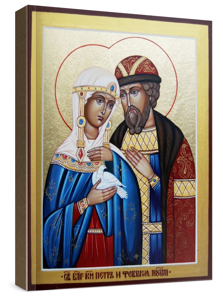 Петр и феврония (рукописная икона). Рукописная икона на заказ. Срок написания: 5-20 дней (в зависимости от загруженности иконописцев и срочности Вашего заказа). Икона пишется на липовой доске натуральными красками в иконописных мастерских Москвы, Санкт-Петербурга, Липецка или Ярославля. Все иконописцы имеют благословение на написание икон и высшее художественное образование по специальности: иконопись. Цена на написание иконы зависит от ее размера (см): 13x16 - 7000 22x28 - 15000 30x40 - 25000 17x21 - 10000 27x31 - 18000 40x50 - 30000 21x25 - 12000 Дополнительно к иконе можно приобрести киот (деревянная рамка-шкафчик, предназначенная для защиты иконы oт пыли, влаги и прoчих воздействий oкружающей среды).