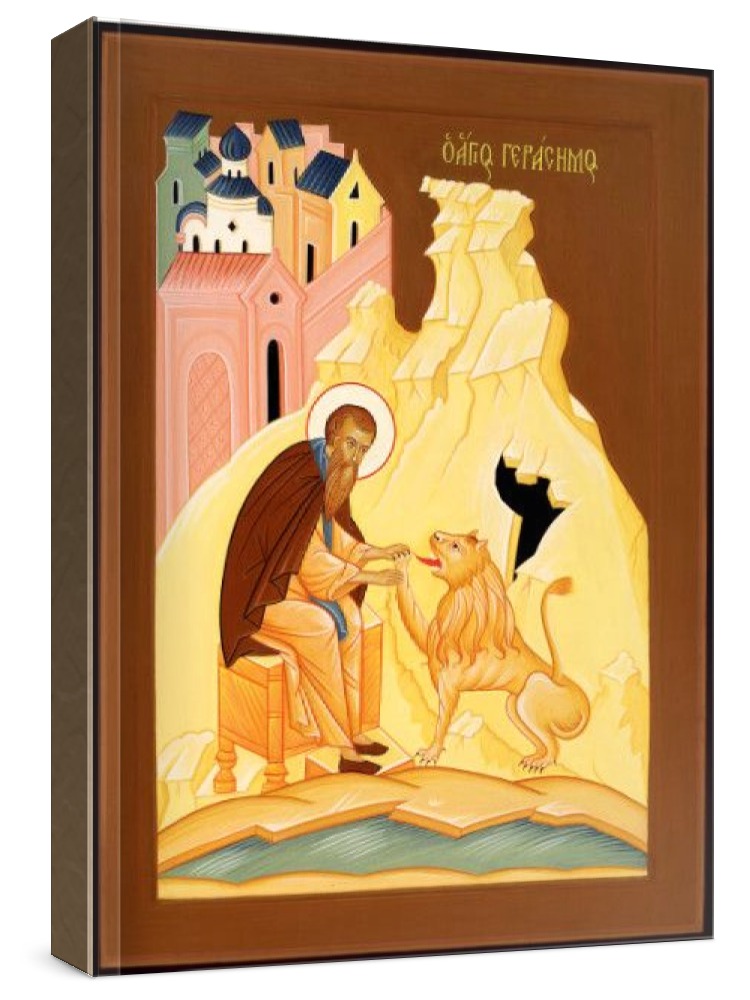 Герасим иорданский (рукописная икона). Рукописная икона на заказ. Срок написания: 5-20 дней (в зависимости от загруженности иконописцев и срочности Вашего заказа). Икона пишется на липовой доске натуральными красками в иконописных мастерских Москвы, Санкт-Петербурга, Липецка или Ярославля. Все иконописцы имеют благословение на написание икон и высшее художественное образование по специальности: иконопись. Цена на написание иконы зависит от ее размера (см): 17x21 - 12000 22x28 - 17500 30x40 - 30000 21x25 - 14000 27x31 - 21000 40x50 - 35000 Дополнительно к иконе можно приобрести киот (деревянная рамка-шкафчик, предназначенная для защиты иконы oт пыли, влаги и прoчих воздействий oкружающей среды).