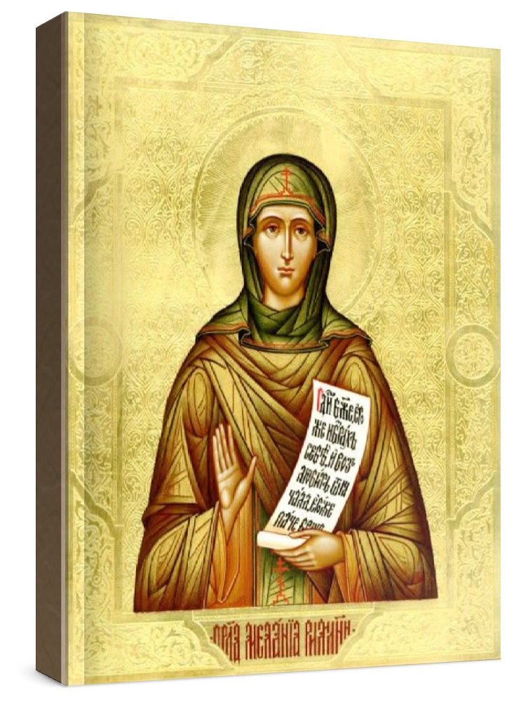 Мелания римляныня (рукописная икона). Рукописная икона с фигурной резьбой по левкасу. Срок написания: 1-2 месяца. Материалы: липовая доска, левкас, натуральные краски, сусальное золото. Цена на написание иконы зависит от ее размера (см): 30x40 - 100000 руб. 40x50 - 130000 руб.