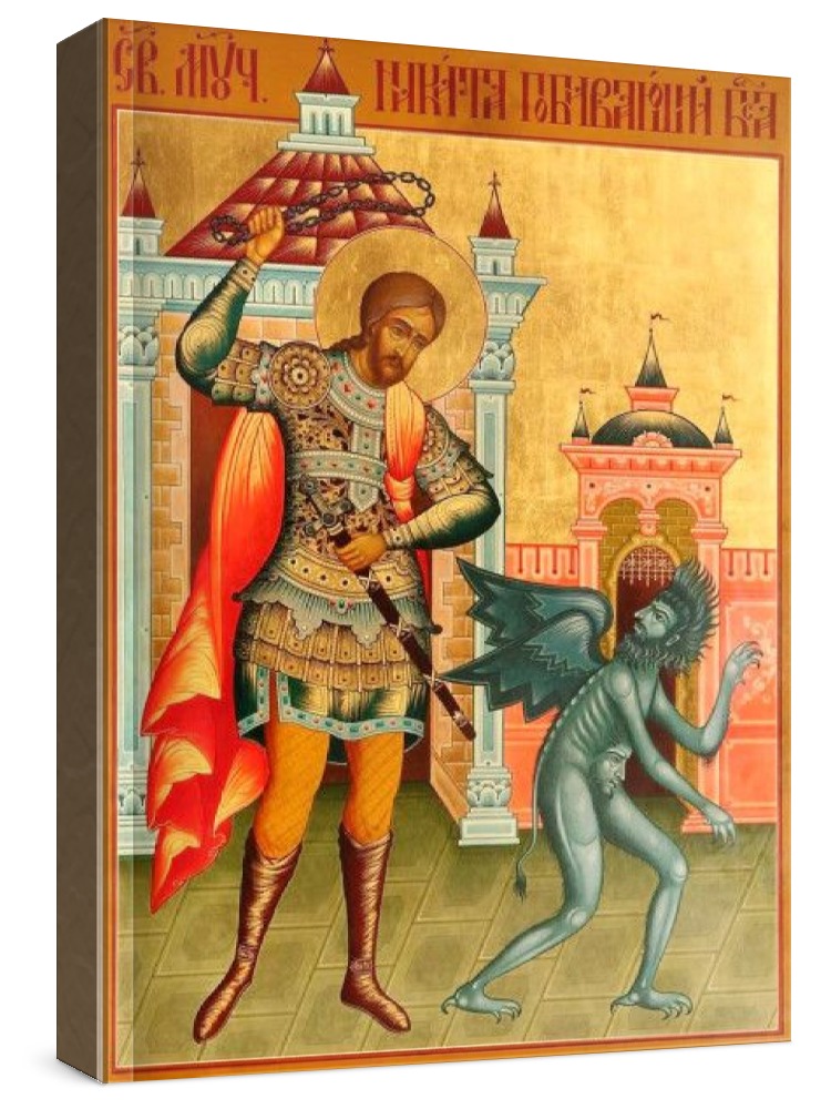 Никита бесогон (рукописная икона). Рукописная икона на заказ. Срок написания: 14-30 дней (в зависимости от загруженности иконописцев и срочности Вашего заказа). Икона пишется на липовой доске натуральными красками в иконописных мастерских Москвы, Санкт-Петербурга, Липецка или Ярославля. Все иконописцы имеют благословение на написание икон и высшее художественное образование по специальности: иконопись. Цена на написание иконы зависит от ее размера (см): 17x21 - 14000 22x28 - 22500 30x40 - 35000 21x25 - 17000 27x31 - 27000 40x50 - 40000 Дополнительно к иконе можно приобрести киот (деревянная рамка-шкафчик, предназначенная для защиты иконы oт пыли, влаги и прoчих воздействий oкружающей среды).