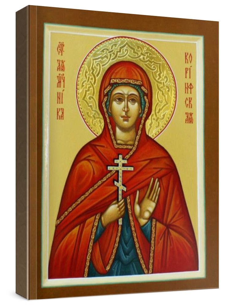 Ника коринфская (рукописная икона). Рукописная икона на заказ. Срок написания: 5-20 дней (в зависимости от загруженности иконописцев и срочности Вашего заказа). Икона пишется на липовой доске натуральными красками в иконописных мастерских Москвы, Санкт-Петербурга, Липецка или Ярославля. Все иконописцы имеют благословение на написание икон и высшее художественное образование по специальности: иконопись. Цена на написание иконы зависит от ее размера (см): 9x10 - 4000 21x25 - 11000 30x40 - 20000 13x16 - 6000 22x28 - 13000 40x50 - 25000 17x21 - 9000 27x31 - 15000 Дополнительно к иконе можно приобрести киот (деревянная рамка-шкафчик, предназначенная для защиты иконы oт пыли, влаги и прoчих воздействий oкружающей среды).
