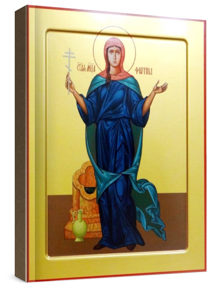 Светлана (фотиния) римская (рукописная икона). Рукописная икона на заказ. Срок написания: 5-20 дней (в зависимости от загруженности иконописцев и срочности Вашего заказа). Икона пишется на липовой доске натуральными красками в иконописных мастерских Москвы, Санкт-Петербурга, Липецка или Ярославля. Все иконописцы имеют благословение на написание икон и высшее художественное образование по специальности: иконопись. Цена на написание иконы зависит от ее размера (см): 13x16 - 8000 22x28 - 18000 30x40 - 30000 17x21 - 12000 27x31 - 22000 40x50 - 35000 21x25 - 15000 Дополнительно к иконе можно приобрести киот (деревянная рамка-шкафчик, предназначенная для защиты иконы oт пыли, влаги и прoчих воздействий oкружающей среды).