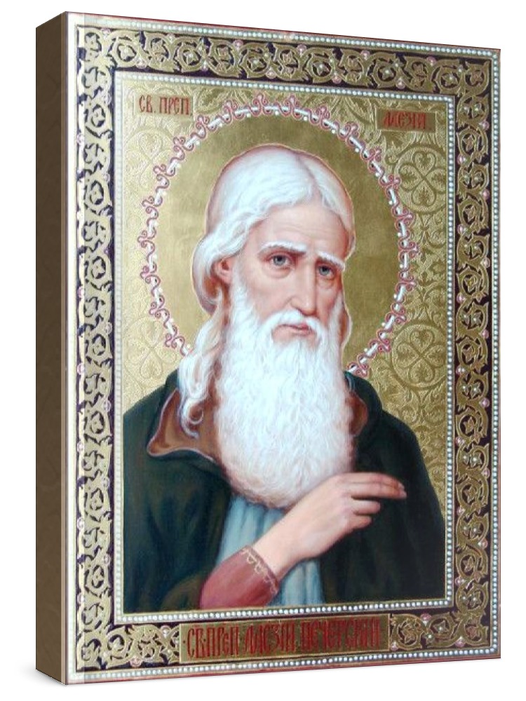 Алексий печерский (рукописная икона). Рукописная икона с фигурной резьбой по левкасу. Срок написания: 1-2 месяца. Материалы: липовая доска, левкас, натуральные краски, сусальное золото. Цена на написание иконы зависит от ее размера (см): 30x40 - 150.000 руб. 40x50 - 200.000 руб. Дополнительно к иконе можно приобрести киот (деревянная рамка-шкафчик, предназначенная для защиты иконы oт пыли, влаги и прoчих воздействий oкружающей среды).