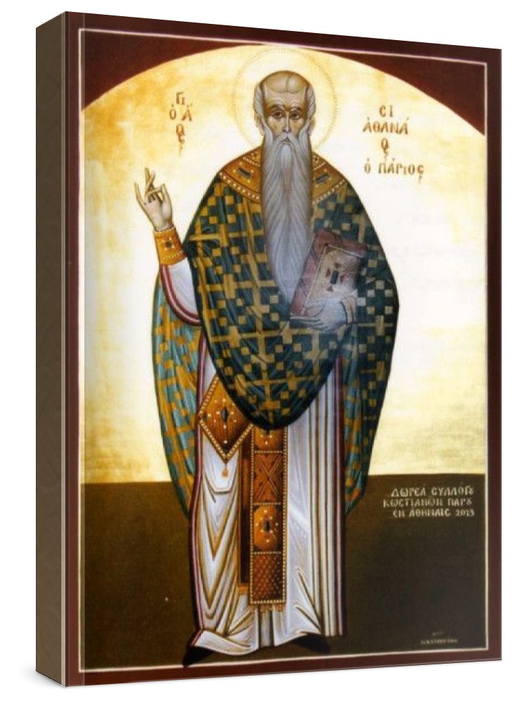 Афанасий паросский (рукописная икона). Рукописная икона на заказ. Срок написания: 5-20 дней (в зависимости от загруженности иконописцев и срочности Вашего заказа). Икона пишется на липовой доске натуральными красками в иконописных мастерских Москвы, Санкт-Петербурга, Липецка или Ярославля. Все иконописцы имеют благословение на написание икон и высшее художественное образование по специальности: иконопись. Цена на написание иконы зависит от ее размера (см): 13x16 - 8000 22x28 - 18000 30x40 - 30000 17x21 - 12000 27x31 - 22000 40x50 - 35000 21x25 - 15000 Дополнительно к иконе можно приобрести киот (деревянная рамка-шкафчик, предназначенная для защиты иконы oт пыли, влаги и прoчих воздействий oкружающей среды).