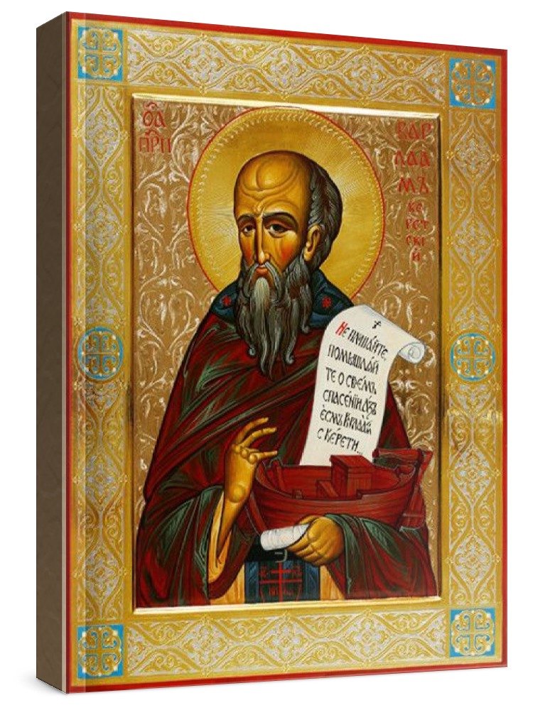 Варлаам керетский (рукописная икона). Рукописная икона с фигурной резьбой по левкасу. Срок написания: 21-45 дней. Материалы: липовая доска, левкас, натуральные краски, сусальное золото. Цена на написание иконы зависит от ее размера (см): 17x21 - 30000 22x28 - 50000 30x40 - 75000 21x25 - 40000 27x31 - 60000 40x50 - 100000 Дополнительно к иконе можно приобрести киот (деревянная рамка-шкафчик, предназначенная для защиты иконы oт пыли, влаги и прoчих воздействий oкружающей среды).
