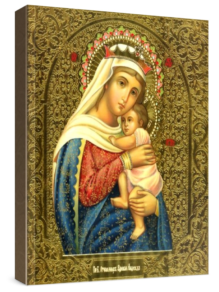 Отчаянных единая надежда (рукописная икона). Рукописная икона с фигурной резьбой по левкасу. Срок написания: 1-2 месяца. Материалы: липовая доска, левкас, натуральные краски, сусальное золото. Цена на написание иконы зависит от ее размера (см): 30x40 - 120.000 руб. 40х50 - 150.000 руб. Дополнительно к иконе можно приобрести киот (деревянная рамка-шкафчик, предназначенная для защиты иконы oт пыли, влаги и прoчих воздействий oкружающей среды).