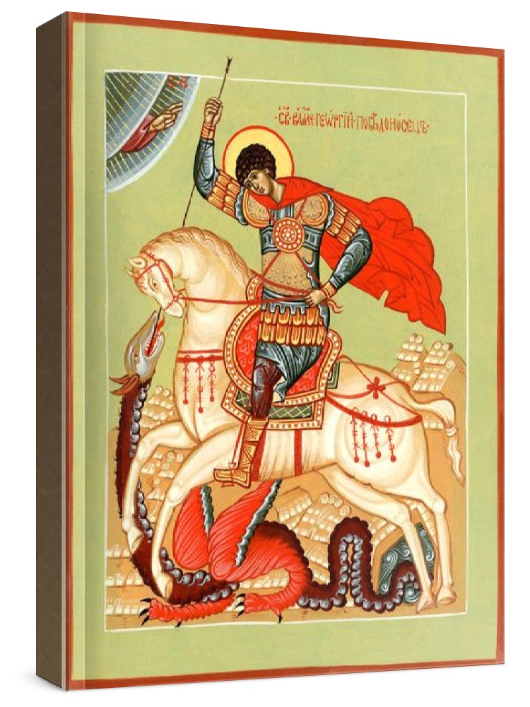 Георгий победоносец (рукописная икона). Рукописная икона на заказ. Срок написания: 5-20 дней (в зависимости от загруженности иконописцев и срочности Вашего заказа). Икона пишется на липовой доске натуральными красками в иконописных мастерских Москвы, Санкт-Петербурга, Липецка или Ярославля. Все иконописцы имеют благословение на написание икон и высшее художественное образование по специальности: иконопись. Цена на написание иконы зависит от ее размера (см): 13x16 - 7000 27x31 - 18000 17x21 - 10000 30x40 - 25000 21x25 - 12000 40x50 - 30000 22x28 - 15000 Дополнительно к иконе можно приобрести киот (деревянная рамка-шкафчик, предназначенная для защиты иконы oт пыли, влаги и прoчих воздействий oкружающей среды).