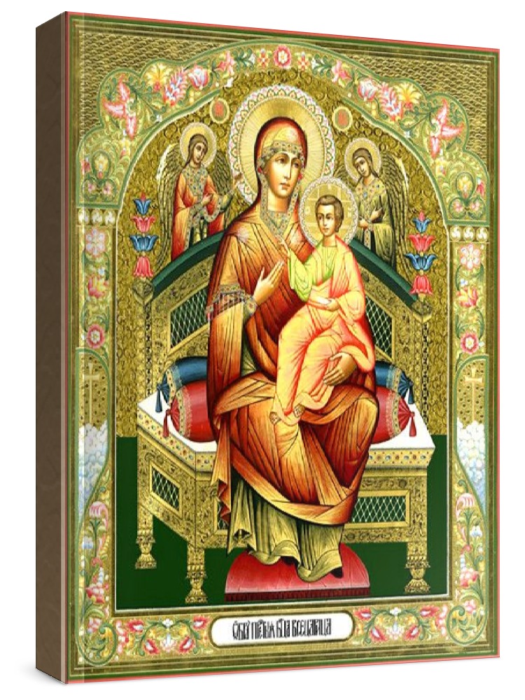 Всецарица (рукописная икона). Рукописная икона с фигурной резьбой по левкасу. Срок написания: 21-45 дней. Материалы: липовая доска, левкас, натуральные краски, сусальное золото. Цена на написание иконы зависит от ее размера (см): 30x40 - 175.000 руб. 40x50 - 200.000 руб. Дополнительно к иконе можно приобрести киот (деревянная рамка-шкафчик, предназначенная для защиты иконы oт пыли, влаги и прoчих воздействий oкружающей среды).