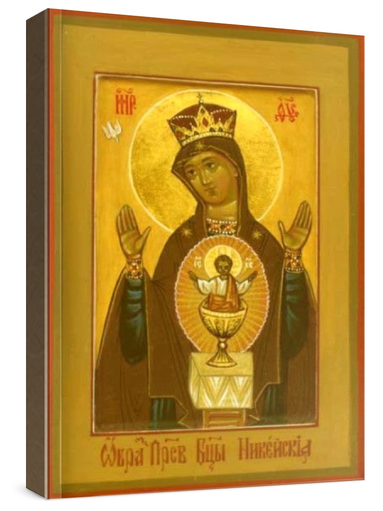 Никейская икона бм (рукописная на заказ). Рукописная икона на заказ. Срок написания: 5-20 дней (в зависимости от загруженности иконописцев и срочности Вашего заказа). Икона пишется на липовой доске натуральными красками в иконописных мастерских Москвы, Санкт-Петербурга, Липецка или Ярославля. Все иконописцы имеют благословение на написание икон и высшее художественное образование по специальности: иконопись. Цена на написание иконы зависит от ее размера (см): 13x16 - 7000 22x28 - 18000 30x40 - 30000 17x21 - 12000 27x31 - 25000 40x50 - 35000 21x25 - 15000 Дополнительно к иконе можно приобрести киот (деревянная рамка-шкафчик, предназначенная для защиты иконы oт пыли, влаги и прoчих воздействий oкружающей среды).
