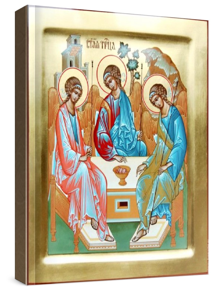 Троица (рукописная икона). Рукописная икона на заказ. Срок написания: 5-20 дней (в зависимости от загруженности иконописцев и срочности Вашего заказа). Икона пишется на липовой доске натуральными красками в иконописных мастерских Москвы, Санкт-Петербурга, Липецка или Ярославля. Все иконописцы имеют благословение на написание икон и высшее художественное образование по специальности: иконопись. Цена на написание иконы зависит от ее размера (см): 13x16 - 8000 22x28 - 20000 30x40 - 35000 17x21 - 13000 27x31 - 27500 40x50 - 40000 21x25 - 17500 Дополнительно к иконе можно приобрести киот (деревянная рамка-шкафчик, предназначенная для защиты иконы oт пыли, влаги и прoчих воздействий oкружающей среды).