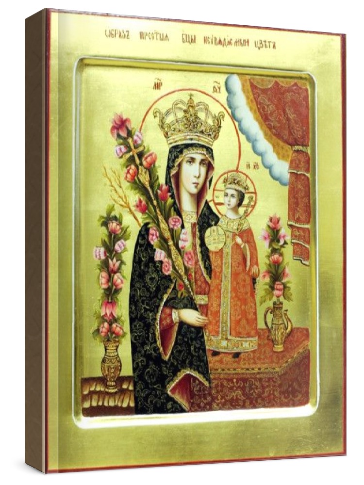 Неувядаемый цвет (рукописная икона). Рукописная икона на заказ. Срок написания: 5-20 дней (в зависимости от загруженности иконописцев и срочности Вашего заказа). Икона пишется на липовой доске натуральными красками в иконописных мастерских Москвы, Санкт-Петербурга, Липецка или Ярославля. Все иконописцы имеют благословение на написание икон и высшее художественное образование по специальности: иконопись. Цена на написание иконы зависит от ее размера (см): 13x16 - 8000 22x28 - 20000 30x40 - 35000 17x21 - 13000 27x31 - 27500 40x50 - 40000 21x25 - 17500 Дополнительно к иконе можно приобрести киот (деревянная рамка-шкафчик, предназначенная для защиты иконы oт пыли, влаги и прoчих воздействий oкружающей среды).