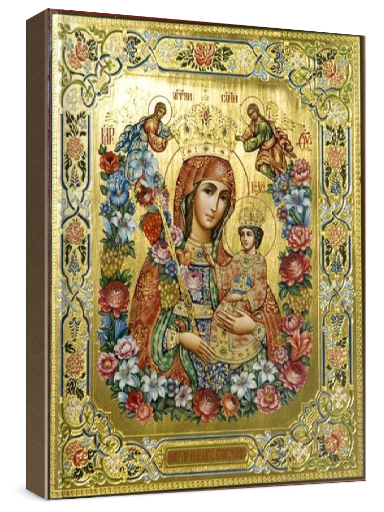 Неувядаемый цвет (рукописная икона). Рукописная икона с фигурной резьбой по левкасу. Срок написания: 21-45 дней. Материалы: липовая доска, левкас, натуральные краски, сусальное золото. Цена на написание иконы зависит от ее размера (см): 21x25 - 40000 30x40 - 75000 22x28 - 50000 40x50 - 100000 27x31 - 60000 Дополнительно к иконе можно приобрести киот (деревянная рамка-шкафчик, предназначенная для защиты иконы oт пыли, влаги и прoчих воздействий oкружающей среды).