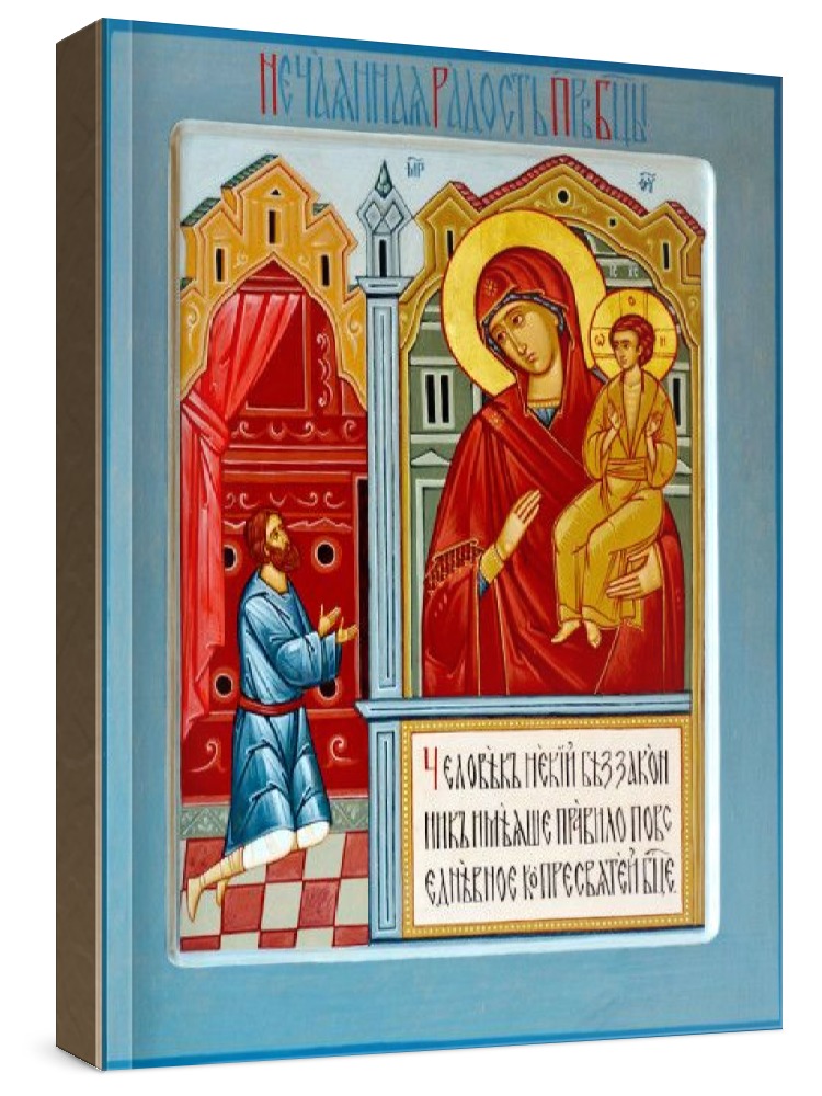 Нечаянная радость (рукописная икона). Рукописная икона на заказ. Срок написания: 5-20 дней (в зависимости от загруженности иконописцев и срочности Вашего заказа). Икона пишется на липовой доске натуральными красками в иконописных мастерских Москвы, Санкт-Петербурга, Липецка или Ярославля. Все иконописцы имеют благословение на написание икон и высшее художественное образование по специальности: иконопись. Цена на написание иконы зависит от ее размера (см): 13x16 - 7000 22x28 - 18000 30x40 - 30000 17x21 - 12000 27x31 - 25000 40x50 - 35000 21x25 - 15000 Дополнительно к иконе можно приобрести киот (деревянная рамка-шкафчик, предназначенная для защиты иконы oт пыли, влаги и прoчих воздействий oкружающей среды).