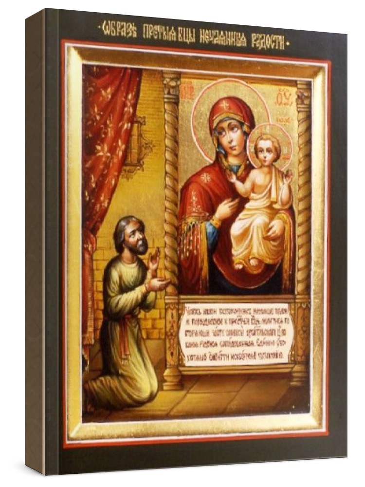 Нечаянная радость (рукописная икона). Рукописная икона на заказ. Срок написания: 1-3 недели (в зависимости от загруженности иконописцев и срочности Вашего заказа). Икона пишется на липовой доске натуральными красками в иконописных мастерских Москвы, Санкт-Петербурга, Липецка или Ярославля. Все иконописцы имеют благословение на написание икон и высшее художественное образование по специальности: иконопись. Цена на написание иконы зависит от ее размера (см): 17x21 - 14000 22x28 - 24000 30x40 - 40000 21x25 - 18000 27x31 - 30000 40x50 - 50000 Дополнительно к иконе можно приобрести киот (деревянная рамка-шкафчик, предназначенная для защиты иконы oт пыли, влаги и прoчих воздействий oкружающей среды).