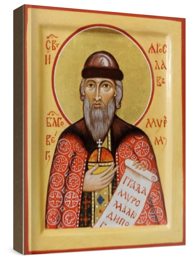 Ярослав муромский (рукописная икона). Рукописная икона на заказ. Срок написания: 5-20 дней (в зависимости от загруженности иконописцев и срочности Вашего заказа). Икона пишется на липовой доске натуральными красками в иконописных мастерских Москвы, Санкт-Петербурга, Липецка или Ярославля. Все иконописцы имеют благословение на написание икон и высшее художественное образование по специальности: иконопись. Цена на написание иконы зависит от ее размера (см): 9x10 - 4000 21x25 - 11000 30x40 - 20000 13x16 - 6000 22x28 - 13000 40x50 - 25000 17x21 - 9000 27x31 - 15000 Дополнительно к иконе можно приобрести киот (деревянная рамка-шкафчик, предназначенная для защиты иконы oт пыли, влаги и прoчих воздействий oкружающей среды).