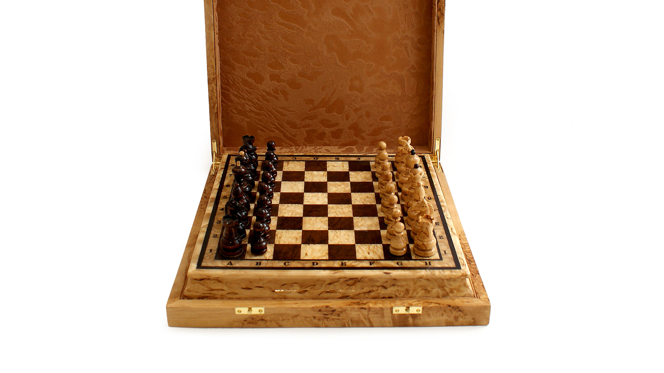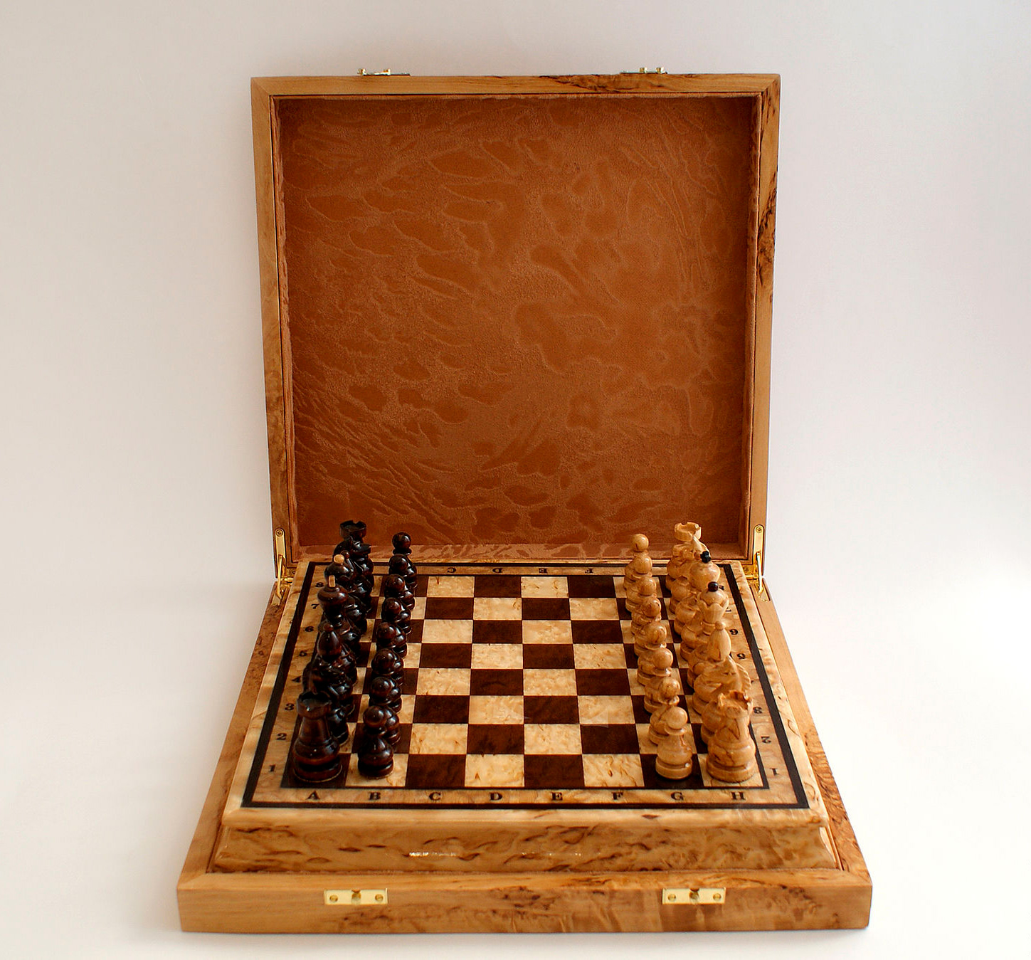Шахматы из карельской березы в футляре 29х29см. Материалы: Карельская берёза, дерево Размер: 285х285х50 мм