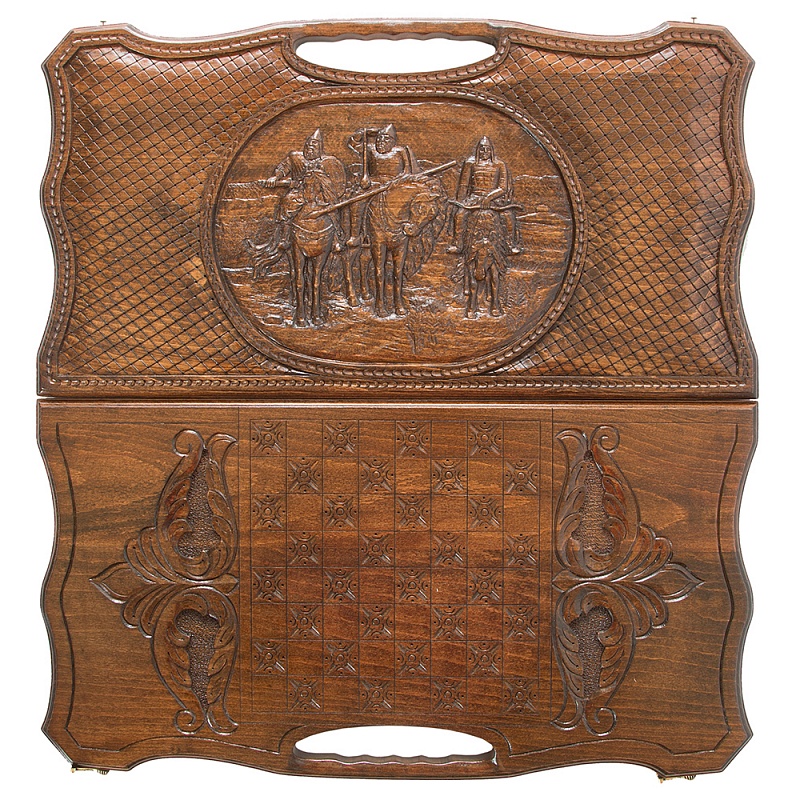 Нарды резные три богатыря, с ручкой