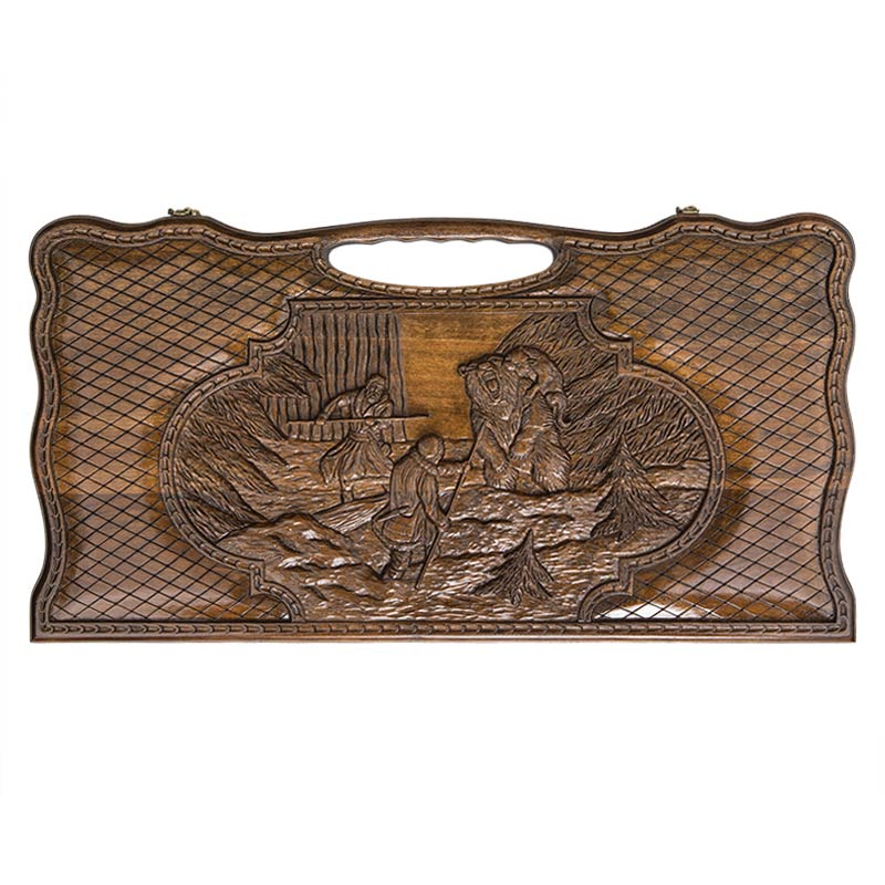 Нарды резные охота на медведя с ручкой 60, Haleyan