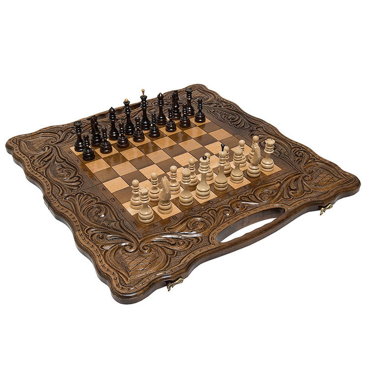 Шахматы + нарды резные антемион 60 с ручкой