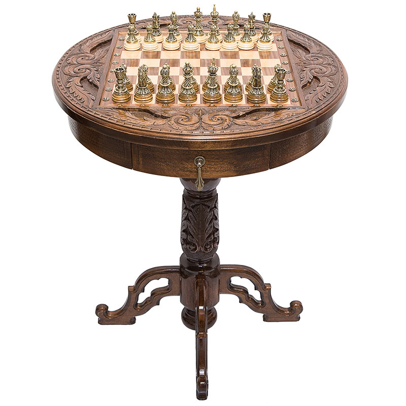 Стол ломберный шахматный "круг света", haleyan. Карен Халеян всегда поражает своими изделиями, которые совмещают в себе качество, удобство, продуманность и демократичную стоимость. Стол ломберный шахматный Круг Света создан специально для тех, кто относится к этой игре с любовью и хочет, чтобы каждая партия приносила удовольствие. Покупка на века Для производства берется бук. Кому-то может показаться, что его стоимость излишне завышена, однако нужно понимать – купив один раз, вы долгое время будете радоваться покупке. Бук известен своей долговечностью и сопротивлением внешним воздействиям. Он может поглощать небольшие механические воздействия, а также не подвержен деформациям при перепадах температуры. Единственный момент, который необходимо учитывать перед покупкой – большой вес в 14.5 кг. Стол будет достаточно тяжело брать с собой, отправляясь к друзьям, поэтому лучше приглашать их к себе на парочку партий. Предмет искусства Стол ломберный шахматный Круг Света выполнен с максимальной внимательностью к деталям. На самом поле буквы и цифры не просто нарисованы, а выполнены на отдельных металлических ставках. По бокам она украшена резкой, напоминающей изысканный венок. Ножка также декоративная – красивые вырезы, округлые формы и многое другое. Он отлично впишется в любое помещение и станет его украшением, сравни дорогой мебели. Фигурки тут также вырезаны вручную из дерева и покрыты лаком. Их качество на высоте – нестандартный подход мастера прослеживается во всем. Красивая форма, оформление в старинном стиле, как будто эту доски забрали у индийского правителя и выставили на продажу. Предусмотрено специальное отделение в виде ящичка, куда помещается весь комплект фигурок.