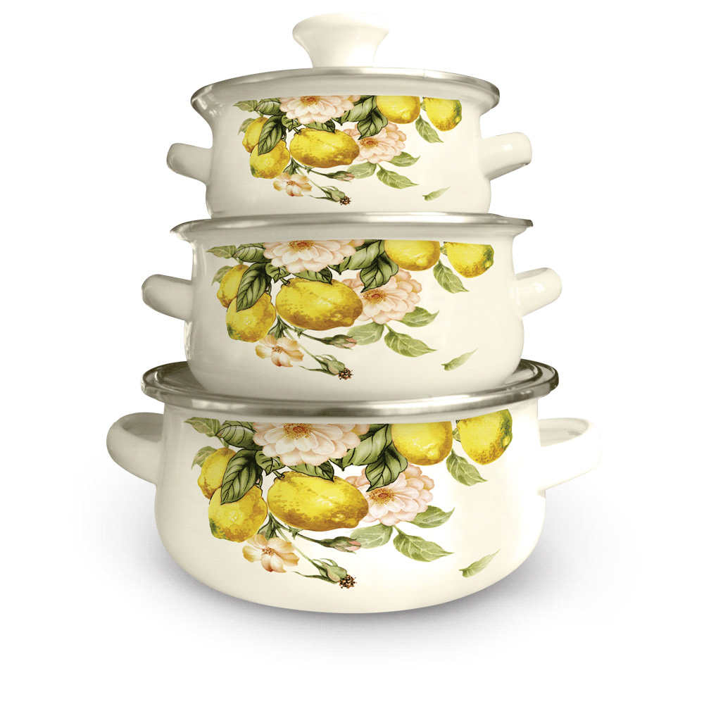 Набор из 3 эмалированных кастрюль 0.5/0.7/1.1 л с крышками Kelli