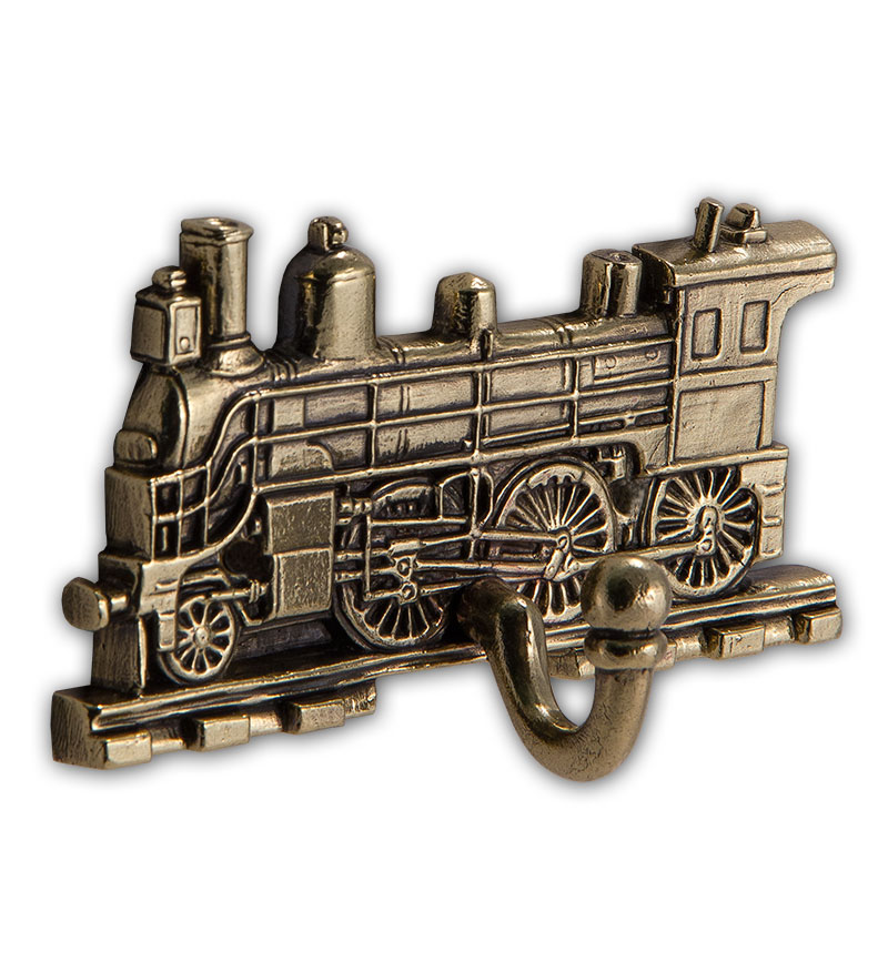 Крючок-вешалка "паровоз". Точное литье из латуни. Ручная работа. Размер: 114 × 60 × 45 мм. Вес 0,2 кг.