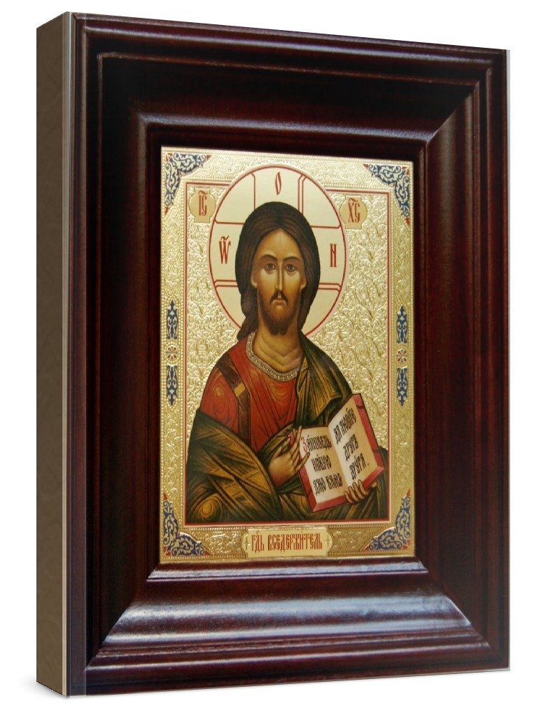 Икона спас вседержитель (21х24), простой киот. Лик нанесен методом объемного тиснения фолиевыми красками по золотой фольге, что гарантирует максимально долгую сохранность яркости изображения. Полный размер иконы с киотом: 21x24 см. Киот (рамка) изготовлен из березы. Икона под стеклом.