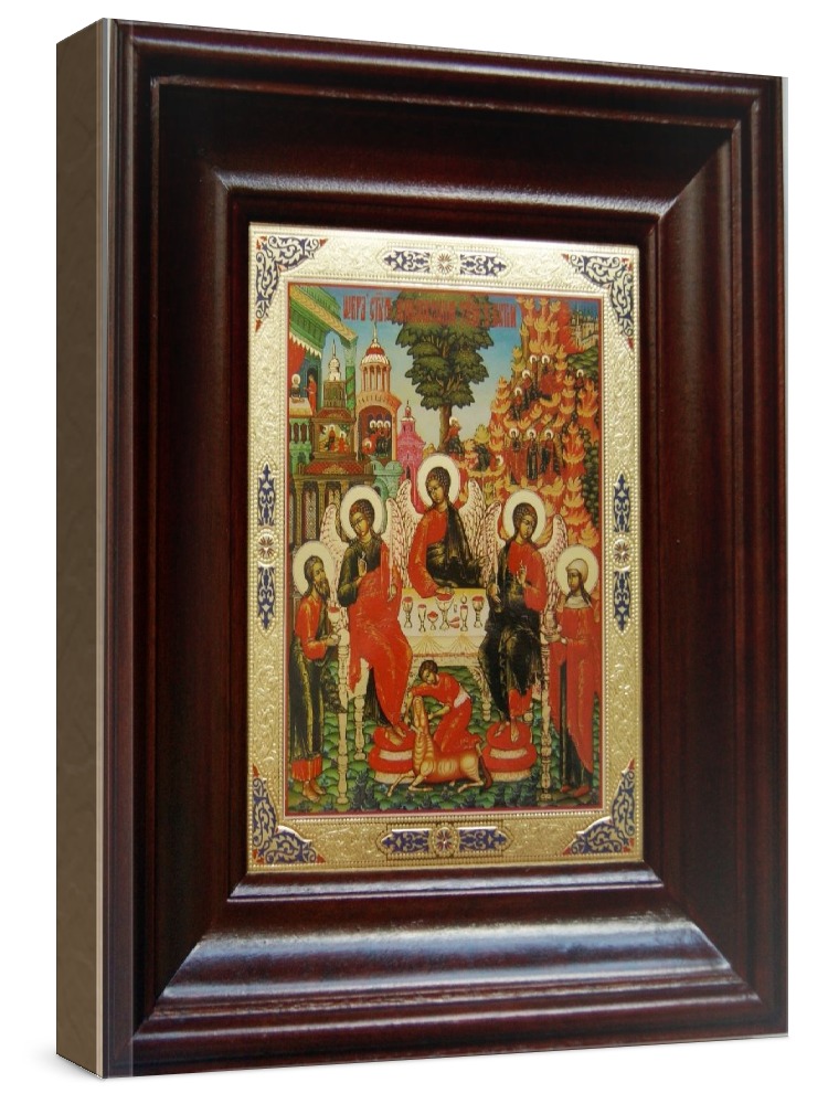 Лик нанесен методом объемного тиснения фолиевыми красками по золотой фольге, что гарантирует максимально долгую сохранность яркости изображения.