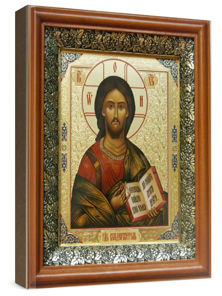 Икона спас вседержитель (19х22), светлый киот