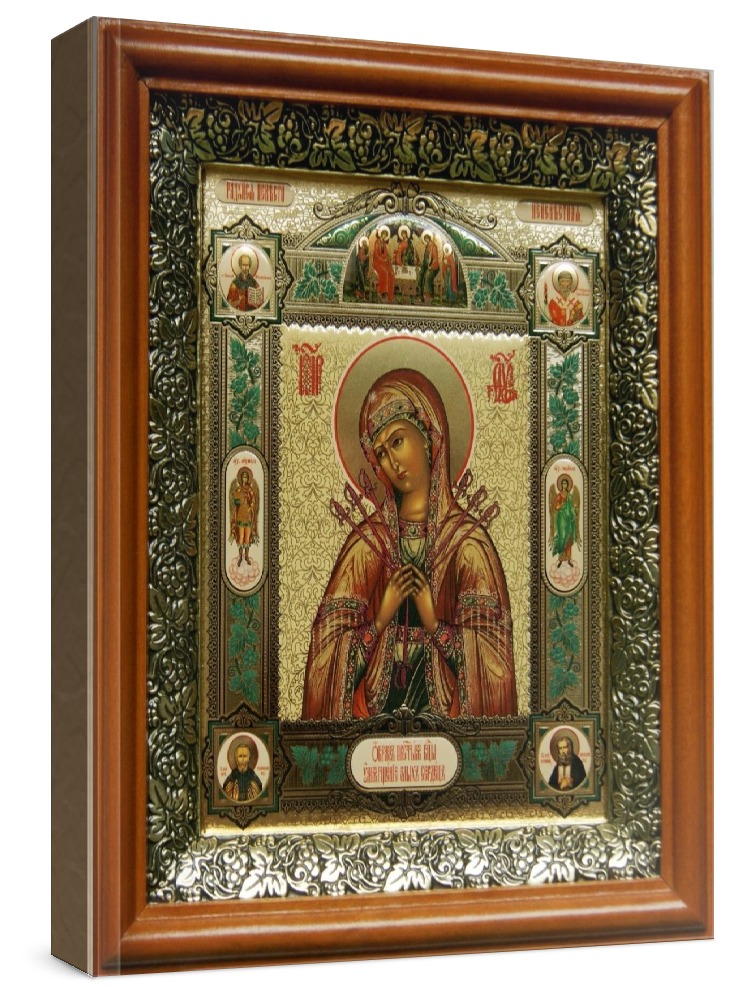 Лик нанесен методом объемного тиснения фолиевыми красками по золотой фольге, что гарантирует максимально долгую сохранность яркости изображения.