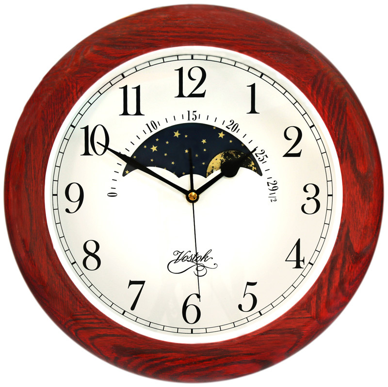 Настенные часы восток н-12114-2. Настенные часы Восток Н-12114-2 Необычайно эксклюзивные часы Восток Н-12114-2 Российского производства Vostok – прежде всего Доступные модели обычным обывателям, ценящим декоративные изысканные очертания стильных форм и широчайшими функциями, эти прекрасные и доступные часы найдут свое место в любом интерьере. Кварцевый механизм отличается надежностью и точностью , не боится встрясок, ударов и нет необходимости в постоянном подзаводе. Корпус этих часов выполнен из массива черной ольхи (цвет – вишня) – этот природный материал прослужит Вам долгие годы и сохранит свой первоначальный вид. Классический белый циферблат. Временные рамки обозначены большими арабскими цифрами – Вы легко определите текущее время. Лунный календарь. Характеристики Восток Н -12114-2 Дополнительные функции - лунный календарьМеханизм - кварцевыйРазмер - 35,5х35,5х5,3 смКорпус - деревоПроизводитель (страна) - Восток (Россия)Диаметр - 35,5 см Размер, см : 35,5х35,5х5,3 Цвет : Вишня Материал : Дерево Механизм : Кварцевый Функции : Лунный календарь