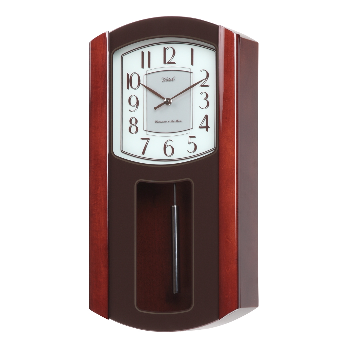 Настенные часы восток н-14004-1. Настенные часы Восток Н-14004-1 Необычайно эксклюзивные часы Восток Н-14004-1 Российского производства Vostok – прежде всего Доступные модели обычным обывателям, ценящим декоративные изысканные очертания стильных форм и широчайшими функциями, эти прекрасные и доступные часы найдут свое место в любом интерьере. Кварцевый механизм отличается надежностью и точностью , не боится встрясок, ударов и нет необходимости в постоянном подзаводе. Почасовой боя, мелодии: Westminster, Ave Maria, Bim Bam. Опция отключения боя на ночь, регулятор громкости. Серебристый маятник. Корпус этих часов выполнен из дерева (мербау) – этот природный материал прослужит Вам долгие годы и сохранит свой первоначальный вид. Классический белый циферблат с контрастной вставкой в центре. Временные рамки обозначены большими арабскими цифрами – Вы легко определите текущее время. Характеристики Восток Н-14004-1 Дополнительные функции - функция отключения боя на ночь, регулятор громкостиМеханизм - кварцевыйРазмер - 50х26х10 смКорпус - деревоПроизводитель (страна) - Восток (Россия)Мелодия - Westminster, Ave Maria, Bim Bam Размер, см : 50х26х10 Цвет : Мербау Материал : Дерево Механизм : Кварцевый Функции : Мелодия, Бой, Ночной режим