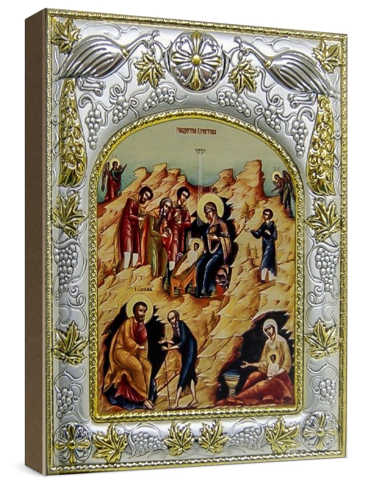 Икона рождество христово (14х18), серебро
