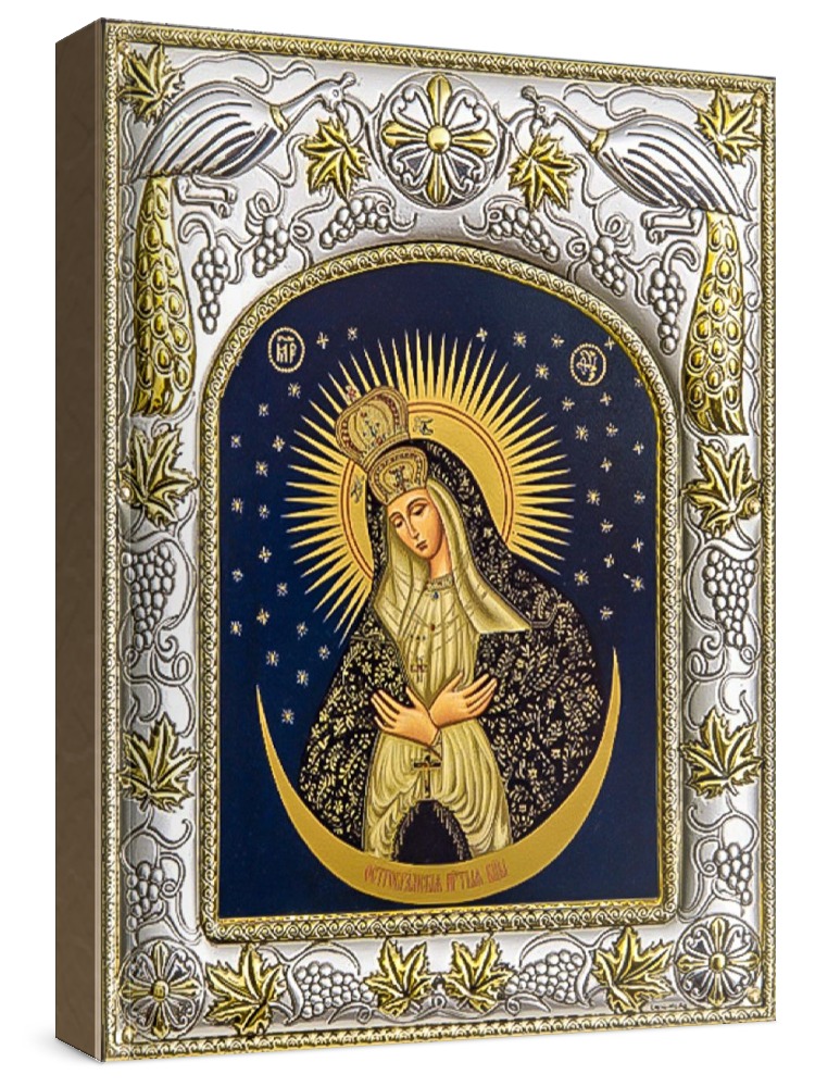 Остробрамская икона бм (14х18), серебро. Икона выполнена на доске из дуба минеральными (природными) красками с использованием сусального золота по всем канонам Православия. Изображение трижды покрыто бесцветным лаком, что гарантирует долговечность, свежесть и чистоту красок. Оклад иконы выполнен из металлической основы, покрытой листовым серебром 925 пробы и 24-каратным золотом (имеется сертификат на обратной стороне). Икона упакована в коробку. Размер иконы: 14х18 см. Производство: Россия.