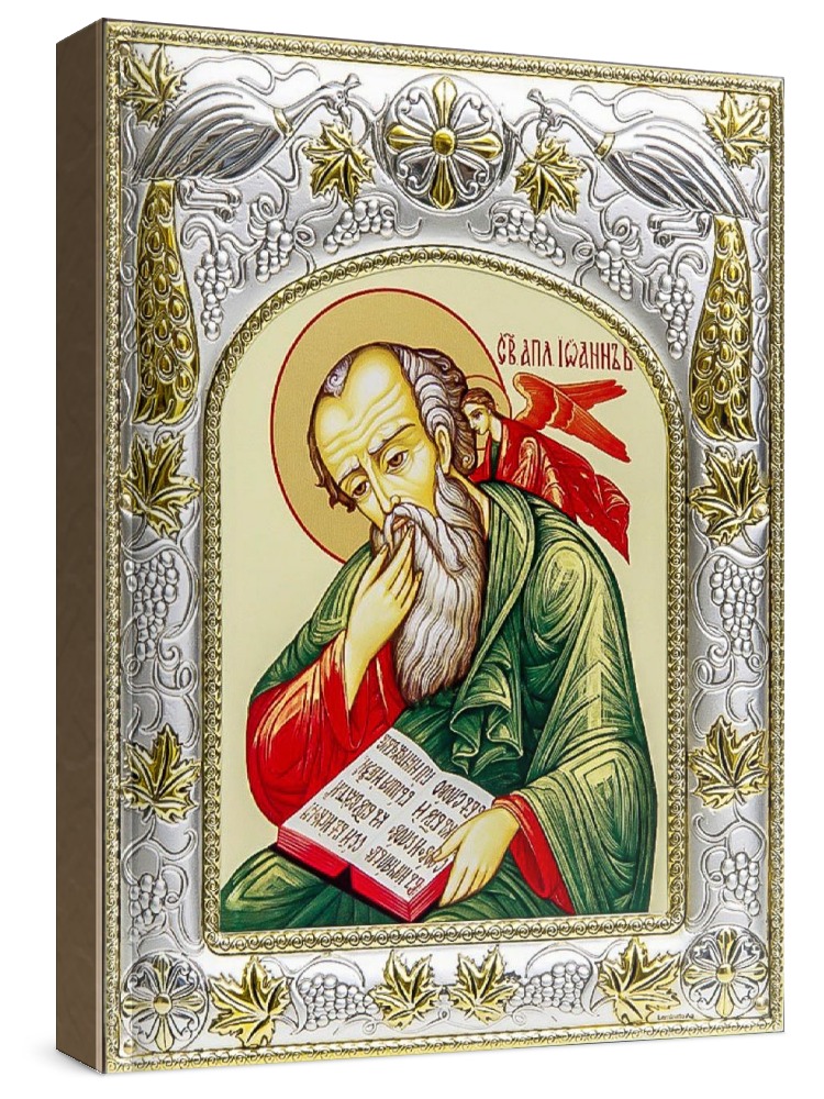 Икона иоанн богослов, апостол (14х18), серебро. Икона выполнена на доске из дуба минеральными (природными) красками с использованием сусального золота по всем канонам Православия. Изображение трижды покрыто бесцветным лаком, что гарантирует долговечность, свежесть и чистоту красок. Оклад иконы выполнен из металлической основы, покрытой листовым серебром 925 пробы и 24-каратным золотом (имеется сертификат на обратной стороне). Икона упакована в коробку. Размер иконы: 14х18 см. Производство: Россия.
