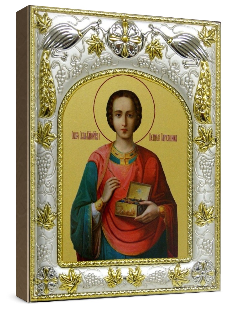 Икона пантелеймон целитель (14х18), серебро