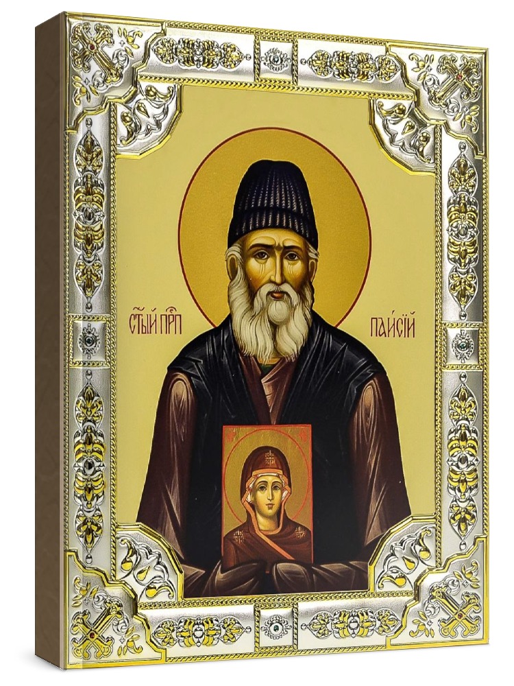 Икона паисий святогорец (18х24), серебро. Икона выполнена на доске из дуба минеральными (природными) красками с использованием сусального золота по всем канонам Православия. Изображение трижды покрыто бесцветным лаком, что гарантирует долговечность, свежесть и чистоту красок. Оклад иконы выполнен из металлической основы, покрытой листовым серебром 925 пробы и 24-каратным золотом (имеется сертификат на обратной стороне), украшен стразами. Икона упакована в коробку. Размер иконы: 18х24 см. Производство: Италия-Россия.