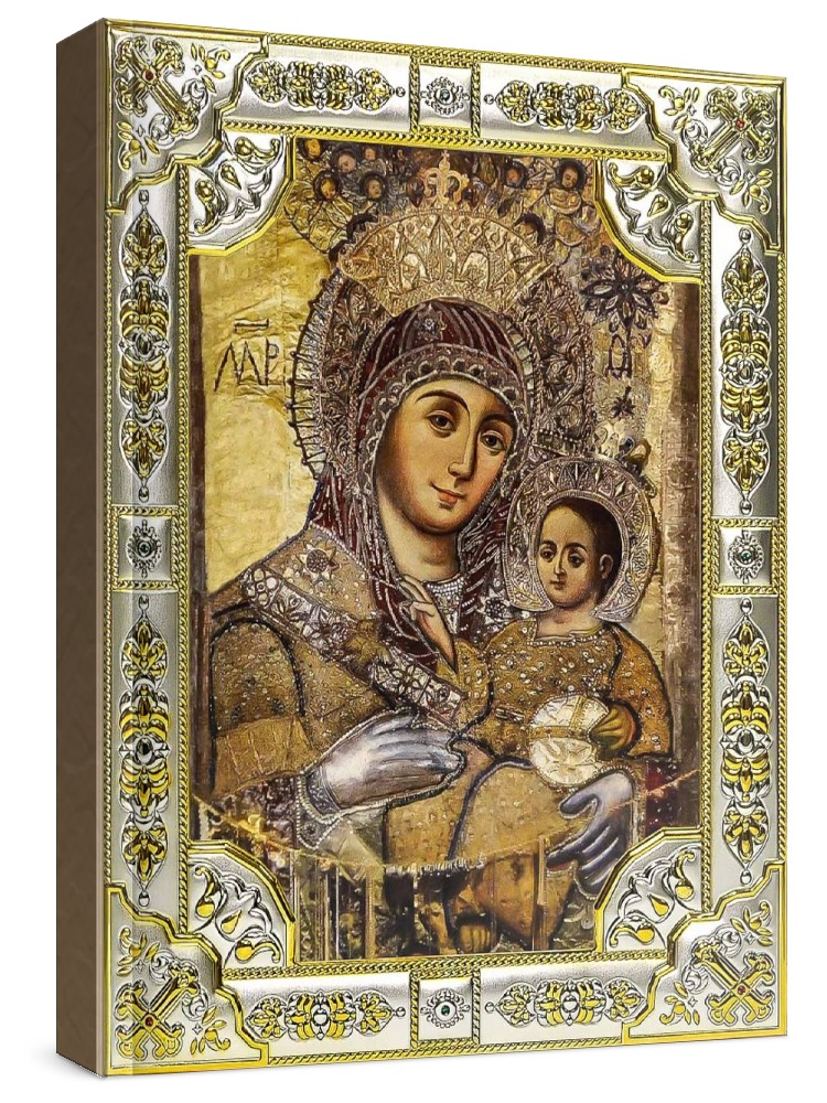 Вифлеемская икона бм (18х24), серебро. Икона выполнена на доске из дуба минеральными (природными) красками с использованием сусального золота по всем канонам Православия. Изображение трижды покрыто бесцветным лаком, что гарантирует долговечность, свежесть и чистоту красок. Оклад иконы выполнен из металлической основы, покрытой листовым серебром 925 пробы и 24-каратным золотом (имеется сертификат на обратной стороне), украшен стразами. Икона упакована в коробку. Размер иконы: 18х24 см. Производство: Италия-Россия.