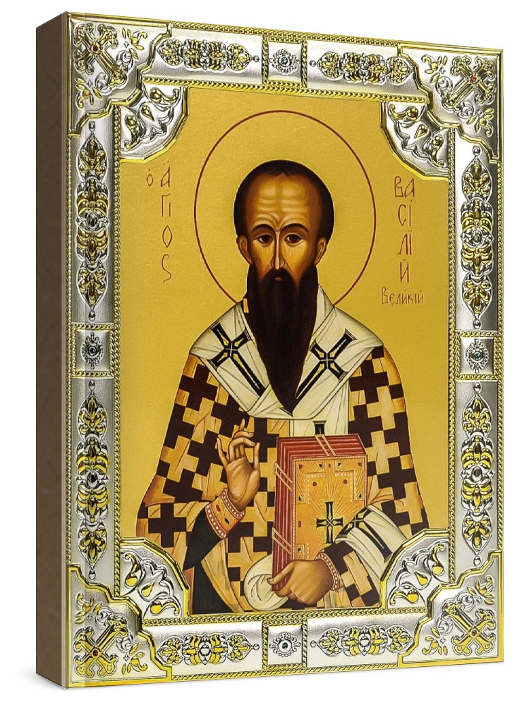 Икона василий великий (18х24), серебро. Икона выполнена на доске из дуба минеральными (природными) красками с использованием сусального золота по всем канонам Православия. Изображение трижды покрыто бесцветным лаком, что гарантирует долговечность, свежесть и чистоту красок. Оклад иконы выполнен из металлической основы, покрытой листовым серебром 925 пробы и 24-каратным золотом (имеется сертификат на обратной стороне), украшен стразами. Икона упакована в коробку. Размер иконы: 18х24 см. Производство: Италия-Россия.
