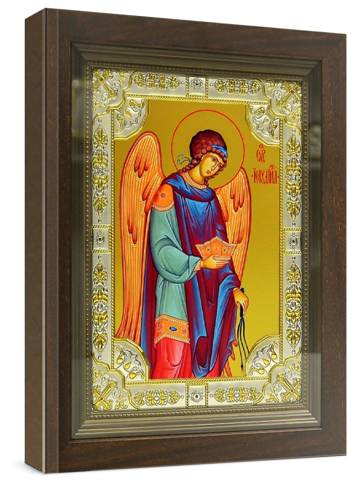 Икона иегудиил архангел (24х30), серебро. Икона выполнена на доске из дуба минеральными (природными) красками с использованием сусального золота по всем канонам Православия. Изображение трижды покрыто бесцветным лаком, что гарантирует долговечность, свежесть и чистоту красок. Оклад иконы выполнен из металлической основы, покрытой листовым серебром 925 пробы и 24-каратным золотом (имеется сертификат на обратной стороне), украшен стразами. Киот со стеклом, выполнен из массива дерева. Размер иконы с киотом: 24х30 см, без киота: 18х24 см. Производство: Италия-Россия.