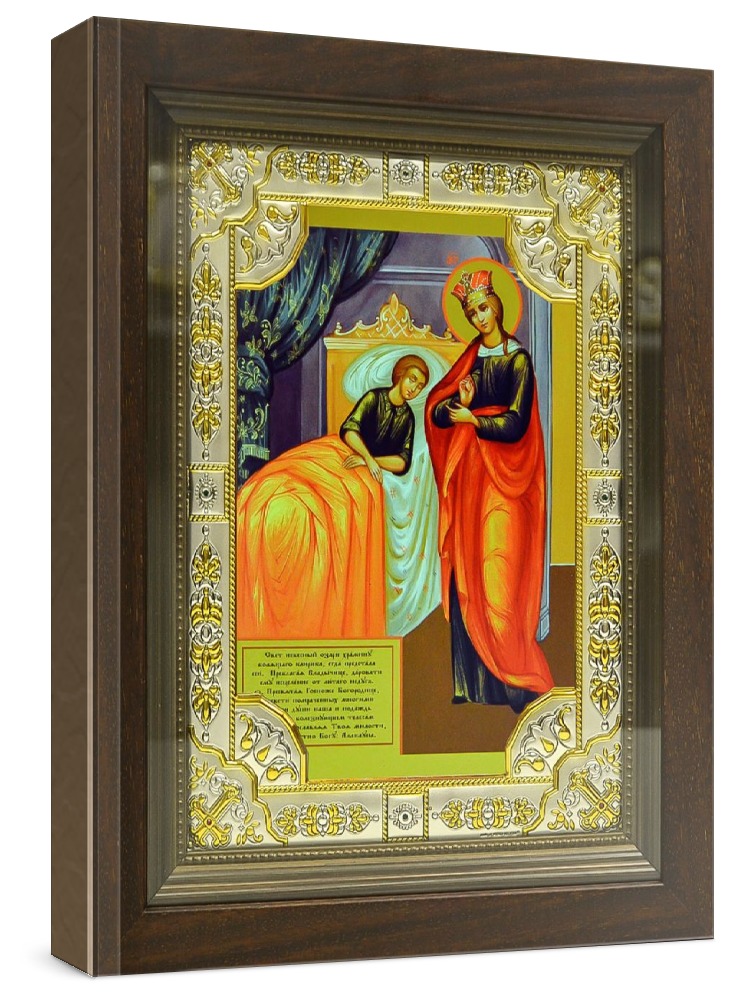 Икона целительница (24х30), серебро. Икона выполнена на доске из дуба минеральными (природными) красками с использованием сусального золота по всем канонам Православия. Изображение трижды покрыто бесцветным лаком, что гарантирует долговечность, свежесть и чистоту красок. Оклад иконы выполнен из металлической основы, покрытой листовым серебром 925 пробы и 24-каратным золотом (имеется сертификат на обратной стороне), украшен стразами. Киот со стеклом, выполнен из массива дерева. Размер иконы с киотом: 24х30 см, без киота: 18х24 см. Производство: Италия-Россия.