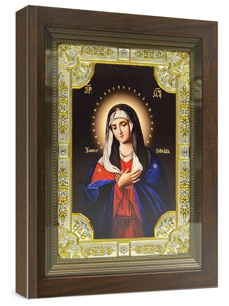 Икона умиление (24х30), серебро. Икона выполнена на доске из дуба минеральными (природными) красками с использованием сусального золота по всем канонам Православия. Изображение трижды покрыто бесцветным лаком, что гарантирует долговечность, свежесть и чистоту красок. Оклад иконы выполнен из металлической основы, покрытой листовым серебром 925 пробы и 24-каратным золотом (имеется сертификат на обратной стороне), украшен стразами. Киот со стеклом, выполнен из массива дерева. Размер иконы с киотом: 24х30 см, без киота: 18х24 см. Производство: Италия-Россия.