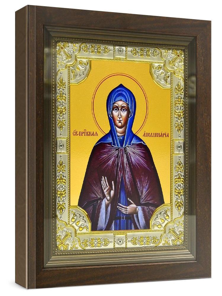 Икона аполлинария египетская (24х30), серебро. Икона выполнена на доске из дуба минеральными (природными) красками с использованием сусального золота по всем канонам Православия. Изображение трижды покрыто бесцветным лаком, что гарантирует долговечность, свежесть и чистоту красок. Оклад иконы выполнен из металлической основы, покрытой листовым серебром 925 пробы и 24-каратным золотом (имеется сертификат на обратной стороне), украшен стразами. Киот со стеклом, выполнен из массива дерева. Размер иконы с киотом: 24х30 см, без киота: 18х24 см. Производство: Италия-Россия.